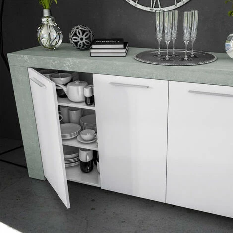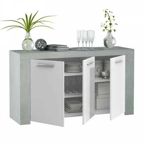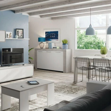 Buffet 3 portes ambiance moderne finition blanc mat et béton ciré clair