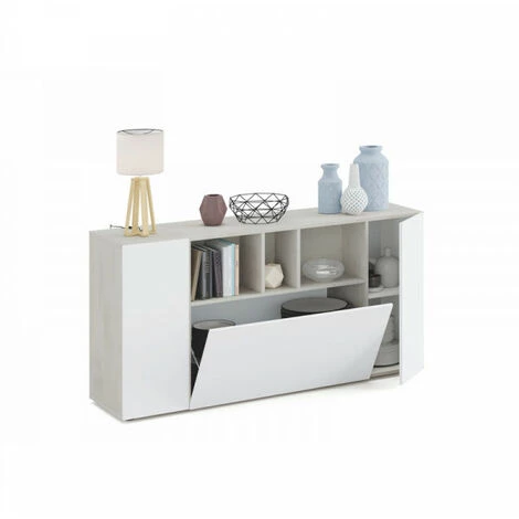 Bahut 3 portes avec 3 niches de rangement de décoration Blanc et Gris ambiance contemporaine