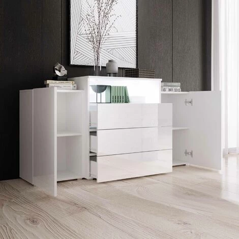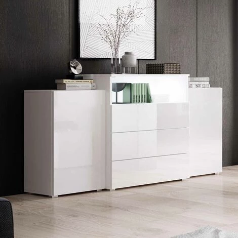 Apportez une note design à votre intérieur avec notre buffet commodes 2 portes et 3 tiroirs blanc laqué MARCEL.