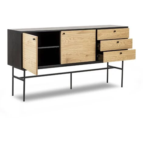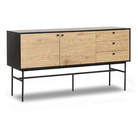 Grâce à ses 3 tiroirs spacieux et ses 2 placards avec étagères vous gagnerez un espace de rangement particulièrement appréciable. Vous pourrez aisément y entreposer vaisselles, bouteilles d’apéritif, linge de maison, jeux de société ou bouquins. Conçue pour habiller le salon, le buffet bas en bois et métal DARYL sera parfait également dans un séjour, dans un couloir d’entrée ou dans un bureau.
