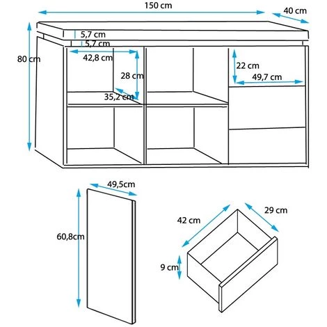 – Complet avec deux tiroirs, étagères ouvertes et deux placards avec étagères internes