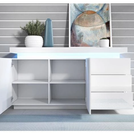 Bahut de ligne moderne idéale comme meuble d’appoint pour un salon de dessin moderne. 2 Portes et 3 tiroirs qui vous seront bien utiles pour entreposer tous vos objets encombrants et regagner un peu de place dans votre salle à manger. L’aménagement intérieur est composé de 2 tablettes ajustables. La structure est en panneaux de particules et dispose de surfaces mélaminées.