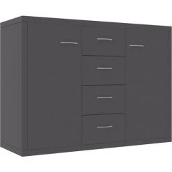 Ce buffet doté d’un design minimaliste sera un ajout pratique mais également très décoratif à votre maison. Avec 4 tiroirs et 2 portes, le buffet offre un espace de stockage suffisant pour les livres, les appareils multimédia et d’autres articles. Le dessus du buffet robuste est idéal pour exposer des objets décoratifs, des cadres photo ou des plantes en pot. Il peut également être utilisé comme table basse, armoire latérale, etc. Grâce au matériau en MDF de de qualité supérieure, ce buffet est durable. L’armoire à tiroirs est facile à nettoyer avec un chiffon humide.