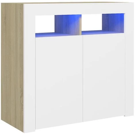 Ce buffet avec lumières LED est destiné à devenir un complément idéal dans votre pièce avec son utilité pratique. La construction robuste de ce buffet le rend extrêmement durable et robuste. Il offre également un grand espace de stockage pour les livres, les appareils multimédia et autres articles. Le dessus robuste est idéal pour exposer des objets décoratifs, des cadres photo ou des plantes en pot. Ce placard dispose de lumières LED RVB, qui ont des menus différents pour changer la couleur des lumières et de laisser la couleur s’ajuster automatiquement différemment. Les lumières LED soulignent le look moderne et contribuent à la sensation tendance.