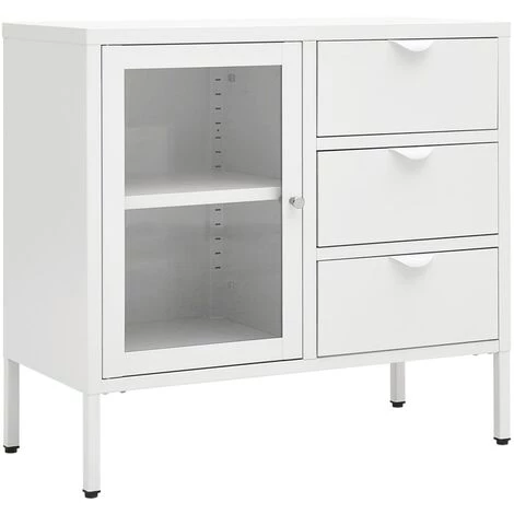Ce buffet élégant, au design classique et épuré, constitue un supplément décoratif et pratique parfait à votre décoration existante. Fabriquée en acier et en verre trempé, la construction de cette armoire de rangement est solide et durable, assurant des années de service. L’armoire dispose d’une étagère réglable et de 3 tiroirs, qui offrent un espace de rangement suffisant pour garder vos DVD, appareils multimédia, livres et petits objets essentiels organisés et à portée de main. Les tiroirs avec glissières à billes en 3 sections assurent une ouverture et une fermeture en douceur. De plus, elle est également facile à nettoyer avec un chiffon humide.