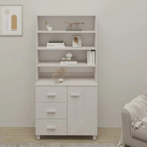 Ce buffet en bois constitue un supplément décoratif et pratique à votre décor. Ce buffet est en bois de pin massif, ce qui le rend stable et robuste. Le buffet haut est doté d’une porte, de 3 tiroirs coulissants et de 3 étagères stables, offrant un grand espace de rangement pour garder vos divers essentiels quotidiens bien organisés et à portée de main. De plus, le dessus de table robuste est parfait pour afficher des objets décoratifs, des cadres photo et des plantes en pot.