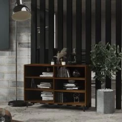 Ce buffet, de style industriel, est destiné à devenir un complément idéal dans votre pièce avec son utilité pratique. Cette armoire à livres a des pieds en métal et une construction robuste, ce qui la rend extrêmement durable et robuste. Avec 6 étagères, l’armoire latérale offre suffisamment d’espace de rangement pour les livres, les appareils multimédia et d’autres articles. Le dessus de table robuste est également idéal pour exposer des objets décoratifs, des cadres photo ou des plantes en pot. De plus, l’armoire de rangement est facile à nettoyer avec un chiffon humide.