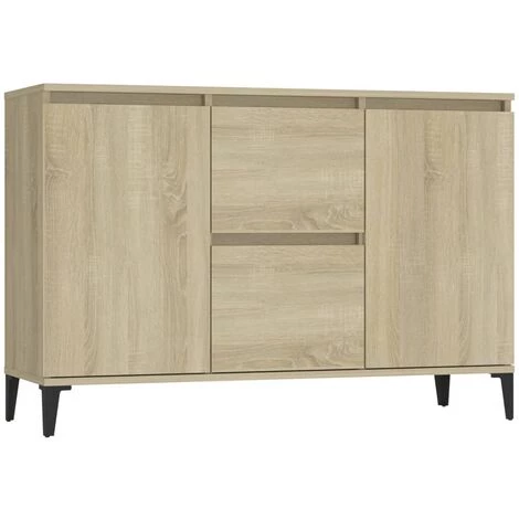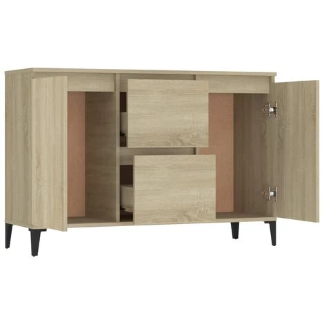 Ce buffet apporte un charme industriel à votre coin salon. L’armoire latérale est suffisamment solide et durable pour assurer un service de longue durée. Les pieds en métal lui assurent une stabilité supplémentaire. Cette bibliothèque comprend 2 tiroirs et 2 portes, offrant un grand espace de rangement pour vos objets. Vous pouvez également placer des objets décoratifs et des cadres photo sur le dessus robuste. De plus, le meuble de rangement est facile à nettoyer avec un chiffon humide.