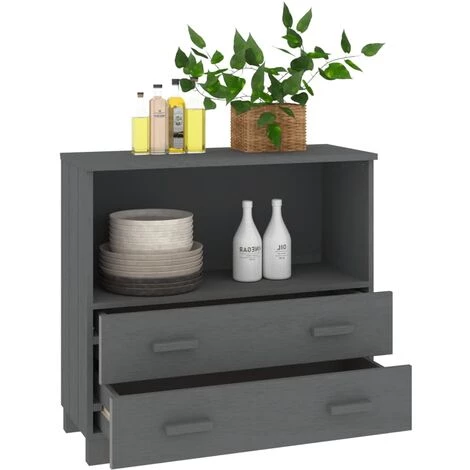 Ce buffet en bois constitue un supplément décoratif et pratique à votre décor. Ce meuble à tiroirs est fabriqué en bois de pin massif, ce qui le rend stable et robuste. Le buffet haut est doté d’un compartiment et de deux tiroirs, offrant un espace de rangement suffisant pour que vous puissiez garder vos différents objets quotidiens bien organisés et à portée de main. De plus, le dessus robuste est parfait pour exposer des objets décoratifs, des cadres photo et des plantes en pot.