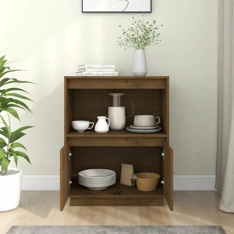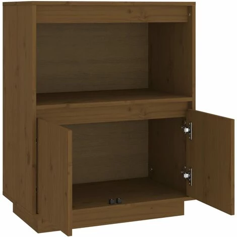 Ce buffet constitue un supplément décoratif et pratique parfait à votre décoration existante. Cette armoire de rangement est fabriquée en bois de pin massif, ce qui la rend stable et robuste. L’armoire latérale offre suffisamment d’espace de rangement pour les livres, les appareils multimédia et autres articles. Le dessus de table robuste est idéal pour afficher des objets décoratifs, des cadres photo ou des plantes en pot.