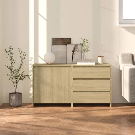 Ces buffets constituent un supplément décoratif et pratique parfait à votre décoration existante. Ces armoires latérales offrent un grand espace de rangement pour garder vos objets quotidiens organisés et à portée de main. Le dessus robuste est parfait pour exposer des objets décoratifs, des cadres photo et des plantes en pot. De plus, ces armoires de rangement sont faciles à nettoyer avec un chiffon humide.
