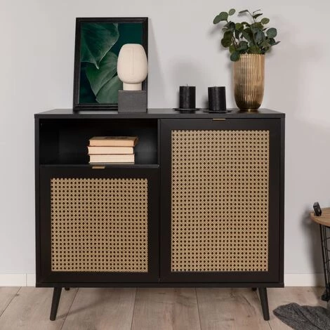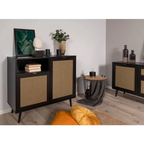 Elle constitue sĂ»rement un supplĂ©ment distinctif Ă tout dĂ©cor de piĂšce avec un style ethnique, une couleur foncĂ©e et un effet de rotin imprimĂ© sur le panneau d’agglomĂ©rĂ©. L’armoire latĂ©rale Vienna 01A avec deux portes, un compartiment de rangement ouvert et une Ă©tagĂšre Ă l’intĂ©rieur sur le cĂŽtĂ© droit offre beaucoup d’espace de rangement. L’armoire Finori est facile Ă assembler et, grĂące Ă ses pieds en bois massif, elle a un look et une stabilitĂ© exceptionnels.