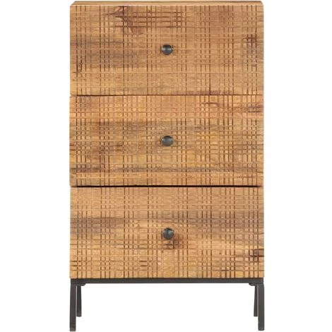 Ce buffet de style vintage et pratique sera un supplément intemporel à votre décoration intérieure. L’armoire latérale, avec des motifs sculptés à la main à l’avant, est faite à la main en bois de manguier massif qui est un bois dur dense et robuste avec des belles stries et des contours bruns ou dorés sur sa surface. Chaque étape du processus est réalisée avec le plus grand soin, qu’il s’agisse de polissage ou de laquage, et le savoir-faire ajoute au style rétro spectaculaire. Les beaux grains de bois rendent chaque meuble unique et légèrement différent l’un de l’autre. Le cadre en acier enduit de poudre ajoute au style industriel du buffet. En outre, cette armoire comprend 3 tiroirs, offrant suffisamment d’espace pour garder toutes sortes de petits objets organisés et à portée de main. L’article est facile à assembler. Remarque importante : Les couleurs varient d’une pièce à une autre, rendant chacune d’elle unique ; la livraison est aléatoire.