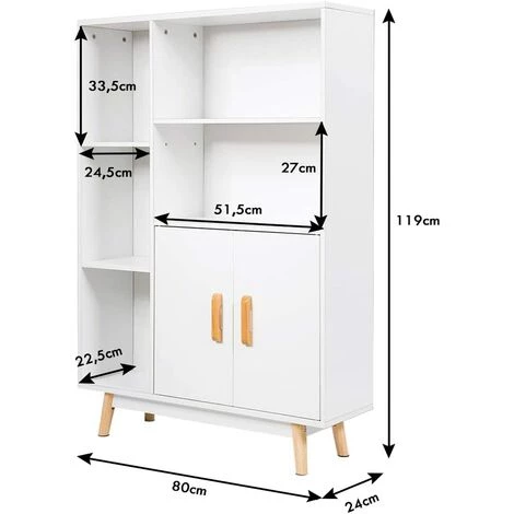 Cette armoire console vous offre beaucoup d’espace de rangement pour garder votre chambre propre et bien rangée. Les 5 compartiments ouverts vous permettent d’accéder rapidement à vos articles et le compartiment inférieur avec porte en dessous protège les objets de la poussière. Le panneau de particules de haute qualité assure une longue durée de vie, tandis que les pieds légèrement orientés vers l’extérieur assurent une bonne stabilité. La combinaison parfaite entre praticité et esthétisme rend notre armoire d’appoint très bien adaptée à n’importe quelle pièce comme le salon, le bureau, etc.