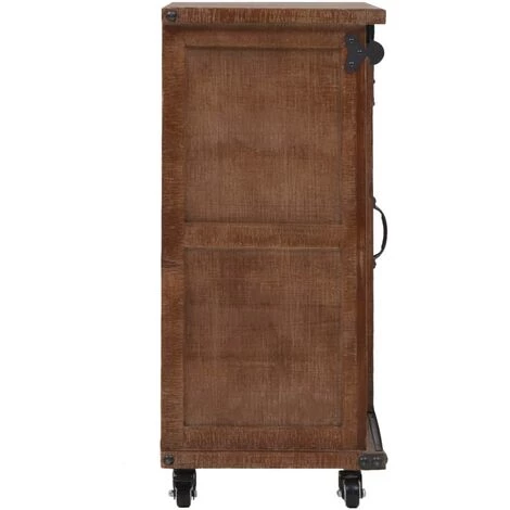 Cette armoire de rangement classique ajoutera une touche décorative à vos pièces. Elle peut également être utilisée comme buffet bas ou buffet. Cette armoire très stable et durable a été fabriquée en bois de sapin massif, ce qui lui confère son charme vintage et ses caractéristiques rustiques. L’armoire offre suffisamment d’espace pour ranger vos différents objets de façon ordonnée. La conception unique du rail coulissant permet à la porte de s’ouvrir et de se fermer facilement et rehausse le style vintage et industriel de l’armoire. L’armoire en bois est conçue avec quatre roulettes flexibles pour la déplacer facilement. Cette armoire est facile à assembler.