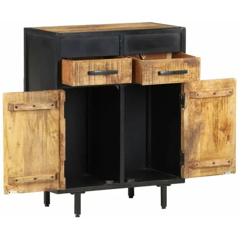 Si vous recherchez une touche simple de charme rustique et industriel à ajouter à votre décoration intérieure, ce buffet en bois sera parfait. L’armoire latérale est faite de bois de manguier brut, un bois dur tropical avec la force de soutenir le poids. Il résiste à l’usure du temps, ce qui le rend stable et durable. Le cadre en acier enduit de poudre ajoute également une stabilité supplémentaire. Cette armoire comprend 2 tiroirs et 2 portes offrant un vaste espace de rangement. De plus, le dessus en bois robuste est idéal pour exposer des objets décoratifs tels que des cadres photo, des plantes en pot, des vases, etc. Remarque importante : les couleurs et les grains peuvent varier d’une pièce à l’autre, rendant chaque pièce unique ; la livraison est aléatoire.