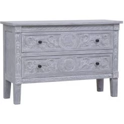 Introduisez une icône du glamour moderne du milieu du siècle dans votre intérieur avec notre buffet élégant et fonctionnel ! Fabriqué en bois d’acajou massif avec une finition grise, le meuble à tiroirs en bois massif est extrêmement durable et robuste. L’acajou est un bois dur tropical qui se distingue par sa beauté, sa durabilité et sa couleur. Les jambes solides contribuent à la construction robuste. De plus, équipé de 2 tiroirs, le meuble offre un grand espace pour ranger vos appareils multimédia, vos livres, ainsi que divers autres objets. Notre buffet en bois massif est facile à assembler.