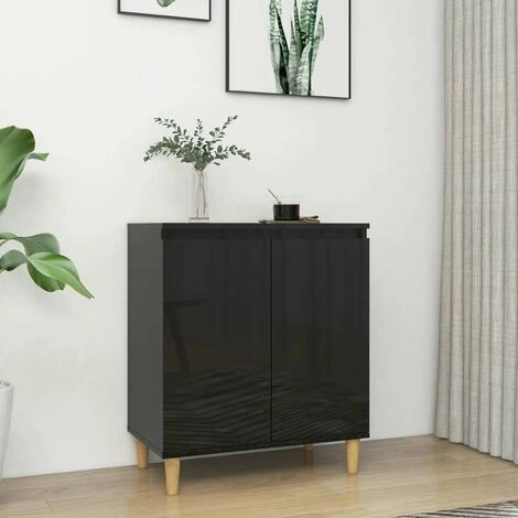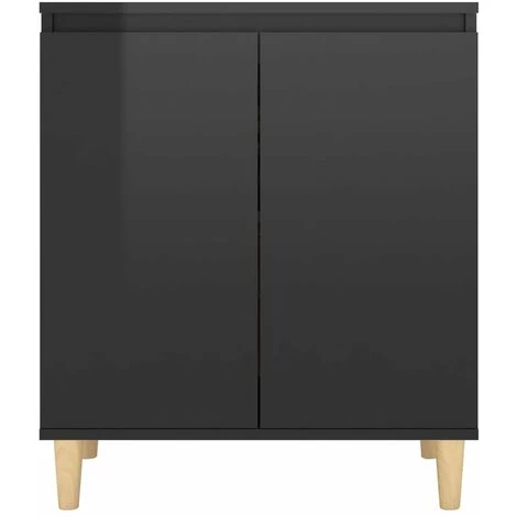 HAPPYSHOPPING Buffet Avec Pieds En Bois Noir Brillant 60x35x70 Cm Agglomere