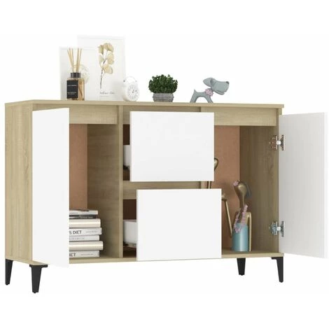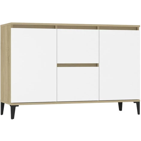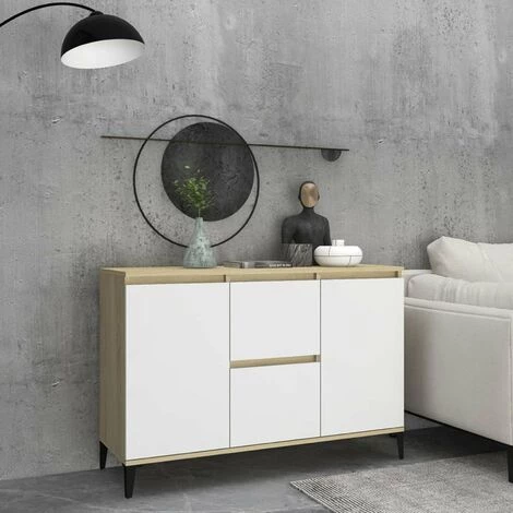Ce buffet apporte un charme industriel à votre coin salon. L’armoire latérale est suffisamment solide et durable pour assurer un service de longue durée. Les pieds en métal lui assurent une stabilité supplémentaire. Cette bibliothèque comprend 2 tiroirs et 2 portes, offrant un grand espace de rangement pour vos objets. Vous pouvez également placer des objets décoratifs et des cadres photo sur le dessus robuste. De plus, le meuble de rangement est facile à nettoyer avec un chiffon humide.