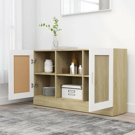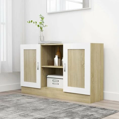Ce buffet tendance, avec son utilité pratique, se veut un supplément idéal à votre pièce. Cette armoire de rangement, fabriquée en aggloméré de première qualité, est durable et stable. L’armoire dispose de 2 compartiments et de 2 portes, offrant un grand espace de rangement pour les livres, les appareils multimédia et d’autres articles, rendant votre pièce propre et bien rangée. Le dessus de table robuste est également idéal pour exposer des objets décoratifs, des cadres photo et des plantes en pot. De plus, cette armoire est facile à nettoyer avec un chiffon humide.