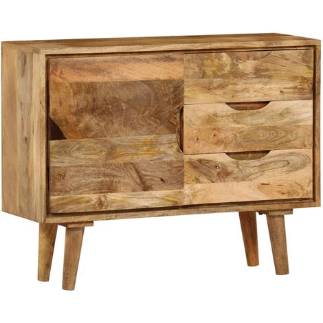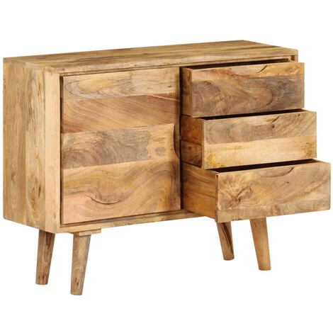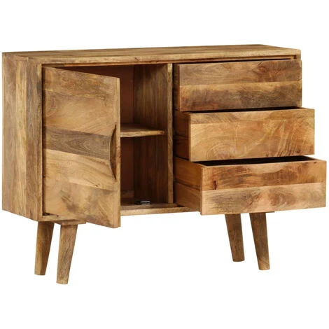 Notre buffet fonctionnel dégage un charme vintage et sera un supplément distinctif à votre maison. Le meuble est fait à la main en bois de manguier qui est solide, stable, durable et magnifique et la qualité de l’artisanat s’ajoute à son style rétro spectaculaire. Chaque étape du processus est réalisée avec le plus grand soin, que ce soit le polissage, la peinture ou le laquage. La qualité de l’artisanat et les beaux grains de bois rendent chaque meuble unique et légèrement différent l’un de l’autre. Conçu avec un grand espace de rangement, le buffet garde vos magazines, livres, DVD et appareils multimédias bien organisés et à portée de main. Remarque importante : Les couleurs varient d’une pièce à l’autre, ce qui rend chacun de nos buffets unique ; la livraison est aléatoire.