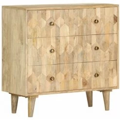 Cette armoire à tiroirs dégage un charme vintage qui apportera une touche intemporelle à votre maison. La commode a trois tiroirs qui seront idéaux pour garder vos articles bien organisés. L’armoire latérale est en bois de manguier massif et en MDF, qui est solide, stable, durable et beau. De plus, le savoir-faire ajoute également à son style rétro spectaculaire. Chaque étape du processus est réalisée avec le plus grand soin, que ce soit le polissage, la peinture ou le laquage. Cette commode est facile à assembler. Remarque importante : La couleur du bois peut varier d’une pièce à l’autre, ce qui rend chaque pièce unique et légèrement différente l’une de l’autre. La livraison est aléatoire.