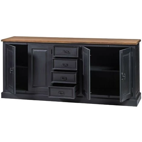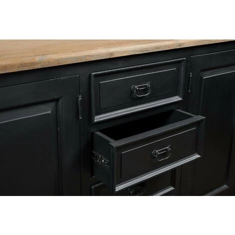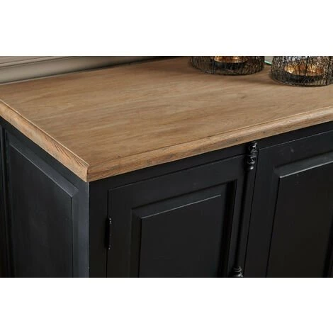 Le plateau en teck naturel contraste avec le noir du corps du meuble comme une signature de la collection DALILA.