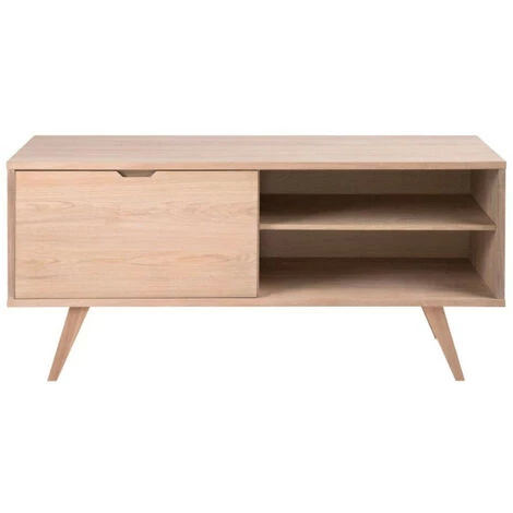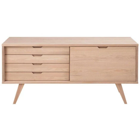 En enfilade ce buffet aux inspirations nordiques dispose de quatre grands tiroirs et d’un espace de rangement fermĂ© par une porte coulissante et amĂ©nagĂ© d’une tablette. Son originalitĂ© ? Le fait de pouvoir laisser ouvert l’espace rangement, le transformant en espace d’exposition.