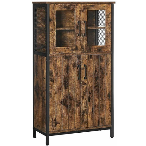 Présentation produit: Meuble de rangement buffet placard armoire étagères réglable meuble de salle de bain cadre en acier pour salon cuisine style industriel 108 cm marron rustique et noir