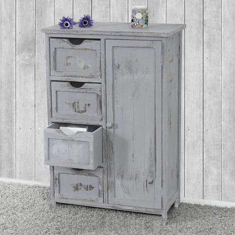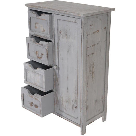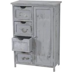 Commode armoire bois paulownia, 1 porte, 4 tiroirs, shabby, vintage, 82x55x30cm, gris livraison: 1x commode