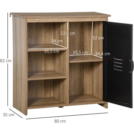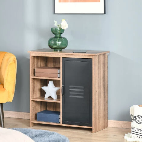Ce splendide petit buffet design industriel sublimera votre intérieur. Mélant avec élégance niches et placard avec porte métal, ce meuble de rangement rajoutera une touche supplémentaire d’élégance à votre intérieur et vous offrira de nouveaux espaces pour ranger et mettre en valeur vos livres, accessoires, etc…
