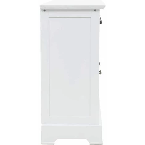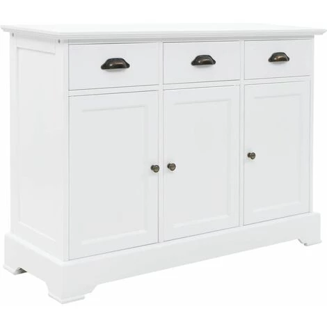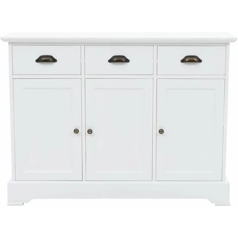 Ce buffet sera un supplément parfait à la décoration de votre salon ou de toute autre pièce de la maison, avec son design chic et sa finition blanche épurée. Il peut également être utilisé comme armoire haute ou latérale. La commode est en MDF et décorée de poignées métalliques sur les tiroirs et les portes. Conçue avec 3 tiroirs et 3 grandes armoires, elle offre un grand espace de rangement pour les livres, les appareils multimédia et autres articles. La surface est idéale pour exposer des objets décoratifs, des cadres photo ou des plantes en pot. L’assemblage est facile.