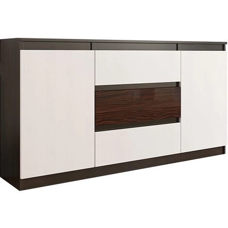 HUCOCO ALBI 3W – Commode Tendance Chambre Bureau 140x40x76 Cm – 3 Tiroirs Profonds + 2 Portes – Meuble De Rangement – Dressing – Marron