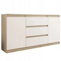 Cette commode moderne de la collection ALBI trouvera facilement sa place dans chaque intérieur. Pratique, elle dispose d’un bel espace de rangement avec ses 3 tiroirs et 2 portes équipées de niches de rangement. Son design minimaliste répondra aux attentes de tous ceux qui apprécient l’alliance de la simplicité et de l’élégance. Les tiroirs sans poignées assurent un confort d’utilisation et accentuent son caractère contemporain. C’est un meuble multifonctionnel qui vous servira dans votre chambre, salon, séjour ou encore dans votre bureau pour ranger les documents