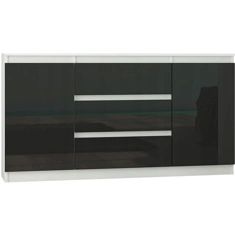 Cette commode moderne de la collection ALBI trouvera facilement sa place dans chaque intérieur. Pratique, elle dispose d’un bel espace de rangement avec ses 3 tiroirs et 2 portes équipées de niches de rangement. Son design minimaliste répondra aux attentes de tous ceux qui apprécient l’alliance de la simplicité et de l’élégance. Les tiroirs sans poignées assurent un confort d’utilisation et accentuent son caractère contemporain. C’est un meuble multifonctionnel qui vous servira dans votre chambre, salon, séjour ou encore dans votre bureau pour ranger les documents