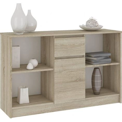 Avec son design contemporain et élégant à la fois la commode ISLA sera parfaite dans chaque pièce de votre maison. Véritable meuble de rangement, il dispose de cinq grandes niches dont une cachée derrière une porte et un tiroir dans lesquels vous pourrez disposer, chaussures, livres, magazines et élément déco