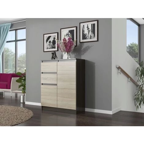 HUCOCO LISBON – Commode Contemporaine Chambre/salon/bureau – 98x80x40cm – Rangement 2 Tiroirs + 2 Portes – Buffet Style Moderne – Marron