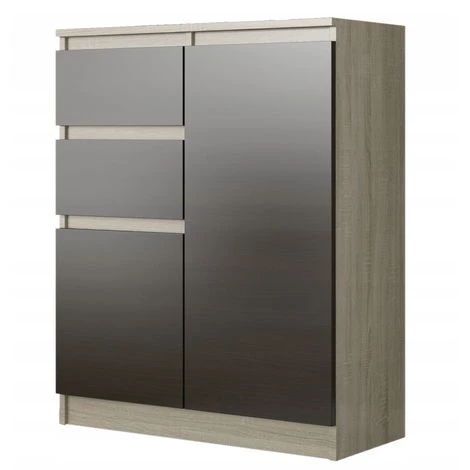 Commode moderne de la collection LISBON trouvera facilement sa place dans chaque intérieur. Pratique, elle dispose d’un bel espace de rangement avec ses 2 tiroirs et trois niches de rangement. Son style épuré répondra aux attentes de tous ceux qui apprécient l’alliance de la simplicité et de l’élégance. Design minimaliste – les tiroirs sans poignées assurent le confort d’utilisation et accentuent son caractère contemporain. C’est un meuble multifonctionnel qui vous servira dans votre chambre, séjour ou salon et même dans votre bureau pour ranger des documents.