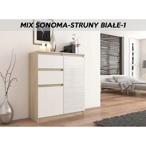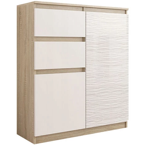 HUCOCO LISBON S3 – Commode Contemporaine Chambre/salon/bureau – 98x80x40cm – Rangement 2 Tiroirs/2 Portes – Buffet Style Moderne – Beige