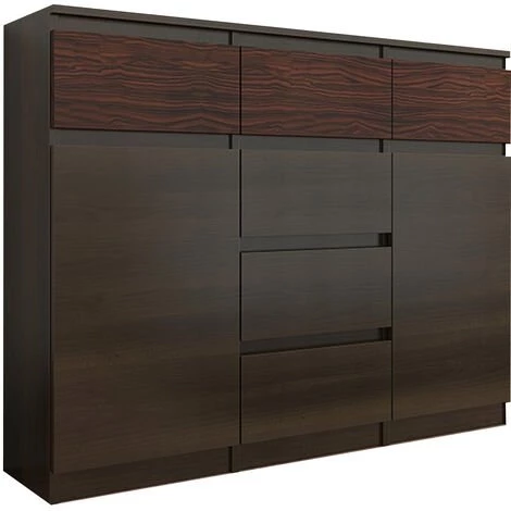 HUCOCO MONACO 1W – Commode Contemporaine Meuble Rangement Chambre/salon – 120x40x98 – 6 Tiroirs Coullisants + 2 Portes – Buffet Séjour – Marron