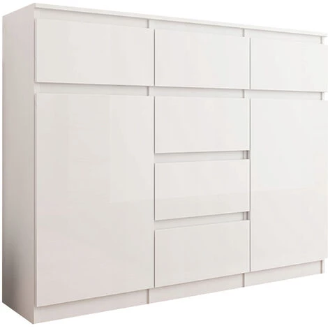 Cette commode moderne de la collection MONACO trouvera facilement sa place dans chaque intérieur. Pratique, elle dispose d’un bel espace de rangement avec ses 6 tiroirs et 2 portes avec deux niches de rangement. Son style unique, structure en panneaux imitation bois mat et façades brillants, répondra aux attentes de tous ceux qui apprécient l’alliance de la simplicité et de l’élégance. Design minimaliste – les tiroirs sans poignées assurent un confort d’utilisation et accentuent son caractère contemporain.