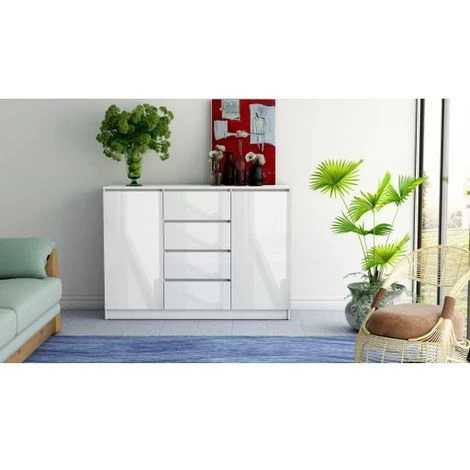 - Faces en blanc brillant, corps du meuble en blanc mat