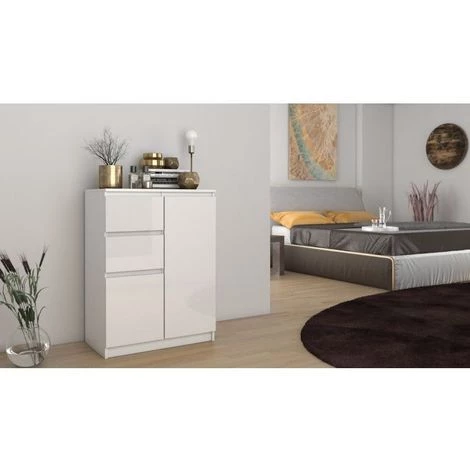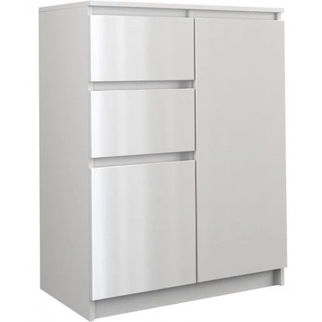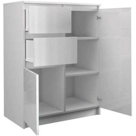 - Finition: structure en blanc mat + 2 tiroirs et porte en blanc brillant