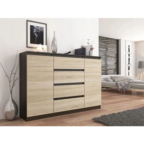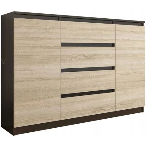 Cette commode moderne de la collection Porto trouvera facilement sa place dans chaque intérieur. Pratique, elle dispose d’un bel espace de rangement avec ses 4 tiroirs et 2 portes avec deux niches de rangement à droite et une à gauche. Son style minimaliste répondra aux attentes de tous ceux qui apprécient l’alliance de la simplicité et de l’élégance. Les tiroirs sans poignées assurent un confort d’utilisation et accentuent son caractère contemporain.
