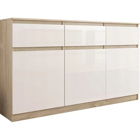 Commode moderne de la collection RIGA trouvera facilement sa place dans chaque intérieur. Pratique, elle dispose d’un bel espace de rangement avec ses 3 tiroirs et 3 portes avec 3 étagères. Son look universel répondra aux attentes de tous ceux qui apprécient l’alliance de la simplicité et de l’élégance. Design minimaliste – les tiroirs sans poignées assurent un confort d’utilisation et accentuent son caractère contemporain. C’est un meuble multifonctionnel qui vous servira dans votre chambre, séjour ou salon et même dans votre bureau pour ranger des documents