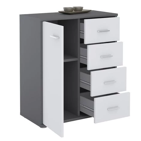 – Avec 4 tiroirs et 1 porte, dissimulant 1 tablette de séparation fixe
