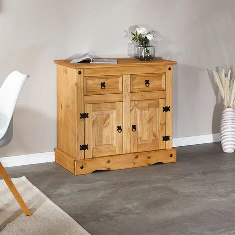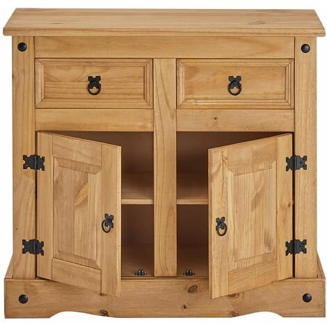 – Le buffet est fabriqué en pin massif à la finition teintée et cirée.