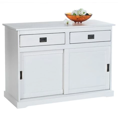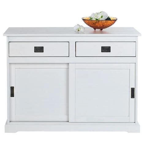 – Le buffet est fabriquĂ© en pin massif et lasurĂ© blanc.