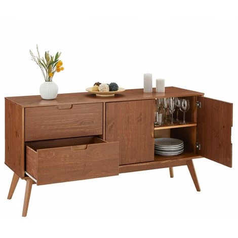 … suit la tendance actuelle des meubles au style scandinave. Les 2 tiroirs ainsi que l’espace derrière les 2 portes battantes, sans poignée apparente, vous offrent suffisamment d’espace de stockage pour votre vaisselle ou bien vos affaires. Ce meuble de rangement au design vintage nordique ne passera pas inaperçu dans votre intérieur, que ce soit comme bahut ou vaisselier dans votre salle à manger ou votre cuisine ou bien comme meuble d’appoint dans votre séjour ou votre entrée.