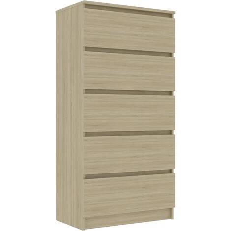 Ce buffet doté d’un design minimaliste sera un ajout pratique mais également très décoratif à votre maison. Avec 5 tiroirs, le buffet à tiroirs offre un espace de stockage suffisant pour les livres, les appareils multimédia et d’autres articles. Le dessus du buffet robuste est idéal pour exposer des objets décoratifs, des cadres photo ou des plantes en pot. Il peut également être utilisé comme table basse, armoire latérale, etc. Grâce au matériau en aggloméré de haute qualité, ce buffet est durable. L’armoire à tiroirs est facile à nettoyer avec un chiffon humide.